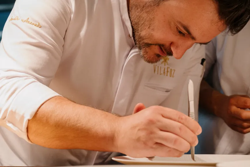Sous la houlette talentueuse et visionnaire du chef Arnaldo Azevedo, le restaurant Vila Foz, étoilé au MICHELIN et rénové en 2025, vous invite à un voyage gastronomique surprenant, où textures et saveurs s'unissent avec précision et harmonie. Chaque plat est une expérience sensorielle unique, un parfait équilibre de contrastes et de sensations.